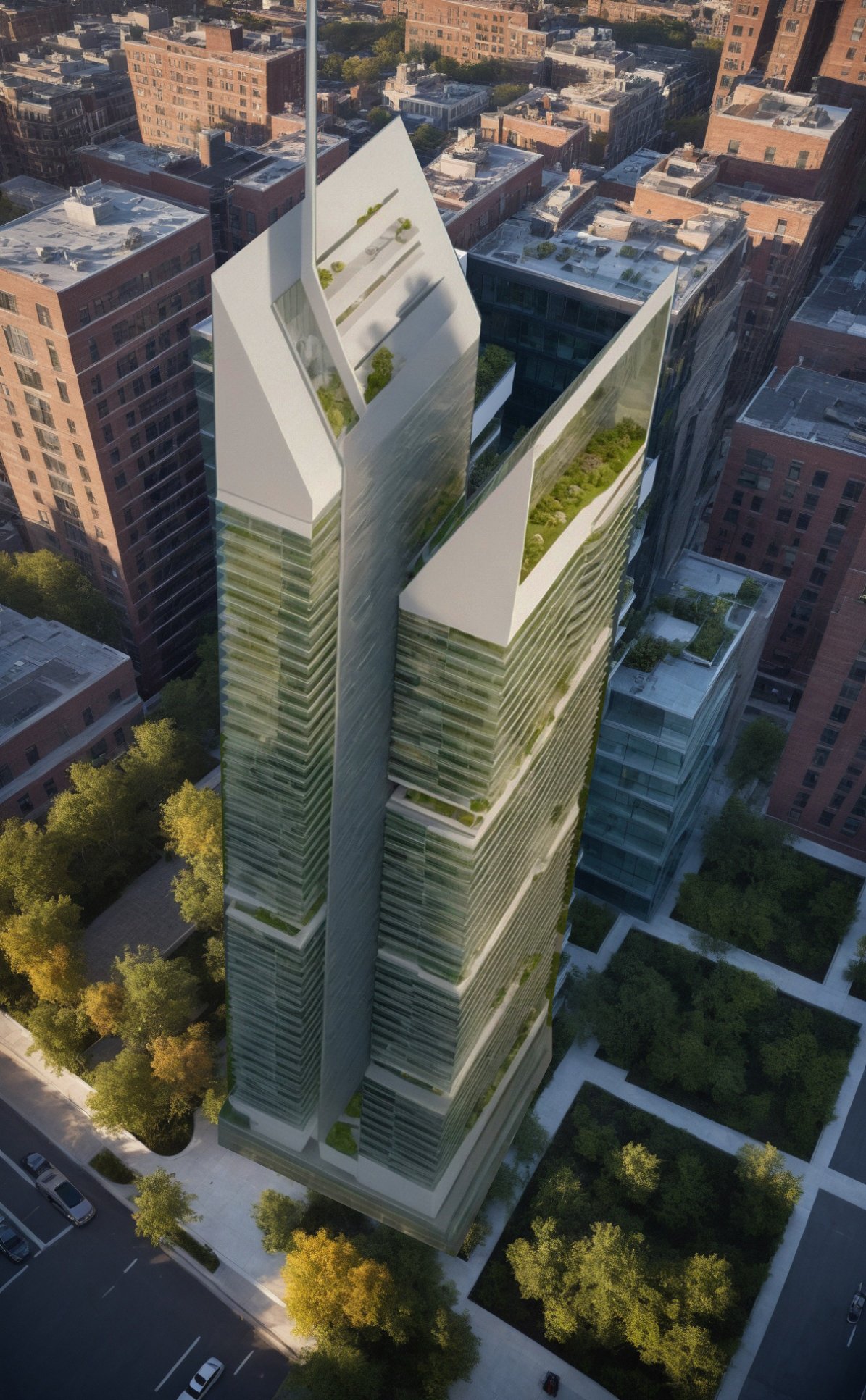 A glass tower infused with layered greenery, bringing nature upward through the city skyline. Its cascading terraces create a living façade.