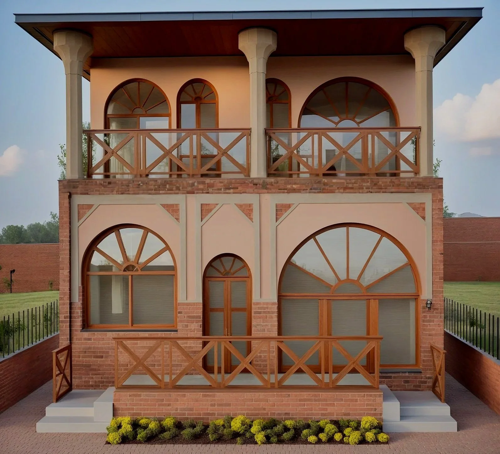 A reimagined, historic courtyard home design enriched with Islamic arches and warm sunset light paired with modern comforts.